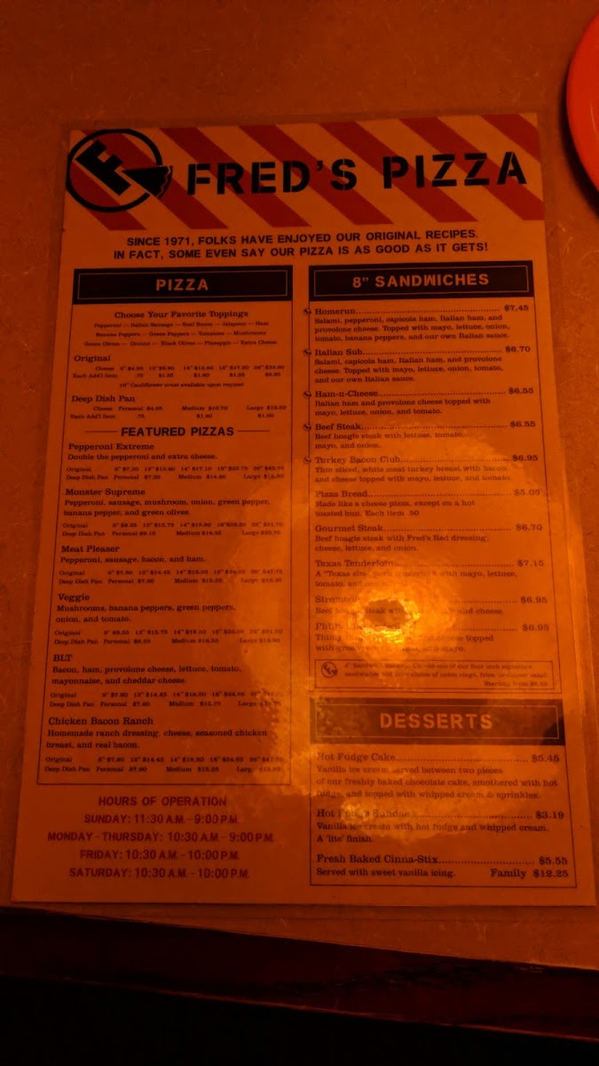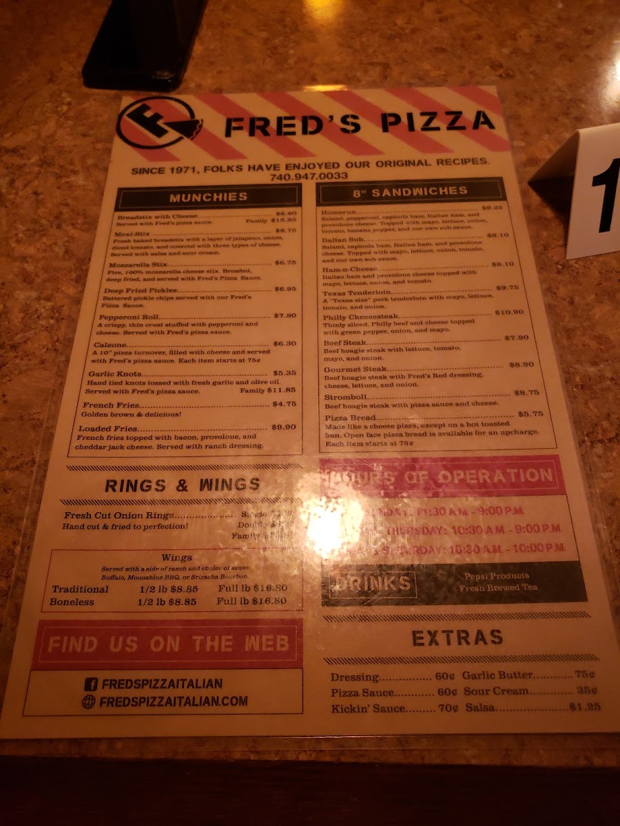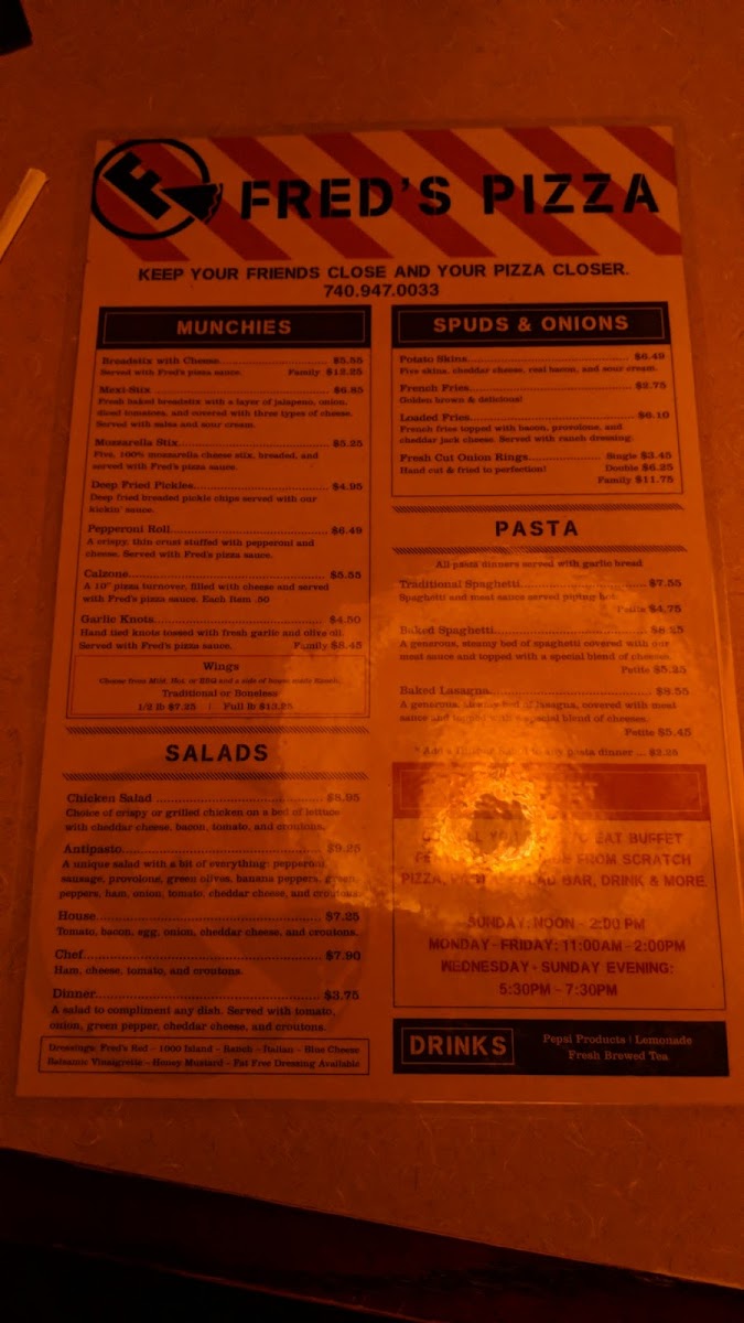 “ Great pizza and even better people. I moved to the Chillicothe area not so long ago from Philadelphia and I missed GOOD pizza. I had a chance to meet the family over at Fred's and after hearing my coworkers rave I made it a point to see what all the fuss was about. I gotta say I was so pleasantly surprised. This is every bit as good as any pizza anywhere. It sure helps things that the folks over at Fred's are among the best I've met. Thanks for having me guys! ”